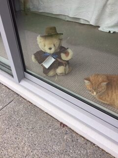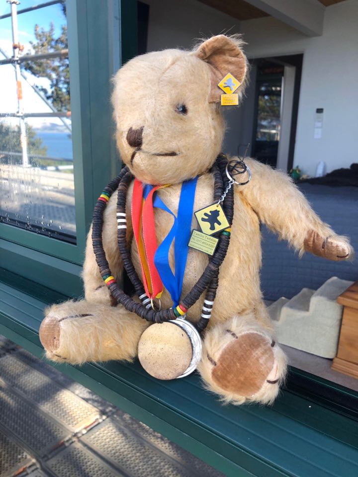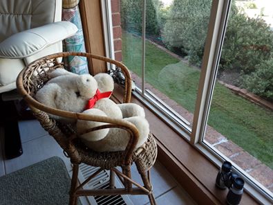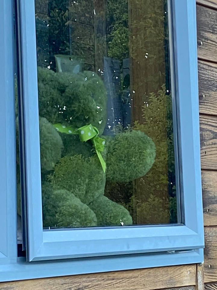 New Zealand is already in lockdown. Alison put the call out to her family members and friends to get involved and pop their Tambo Teddies in the window. Her daughter, Fiona lives with her Tambo Teddy Gartmore Gus in Wellington. Fi sent through photos of Gus squashed up against the window prompting Alison to comment, ‘he looks like he wants to escape’.