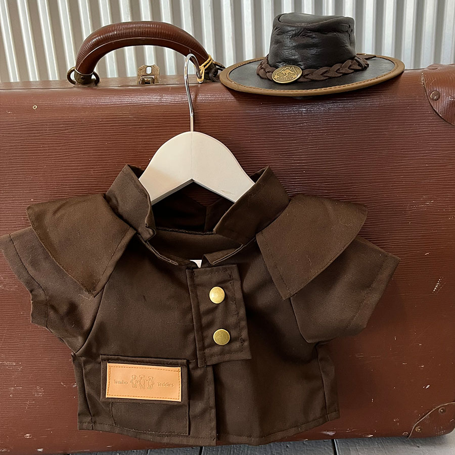 Dress your small Basil or Toby bear up in a bear-as-a-bone coat and an ‘akubra’ hat. Ready for a day in the paddock.