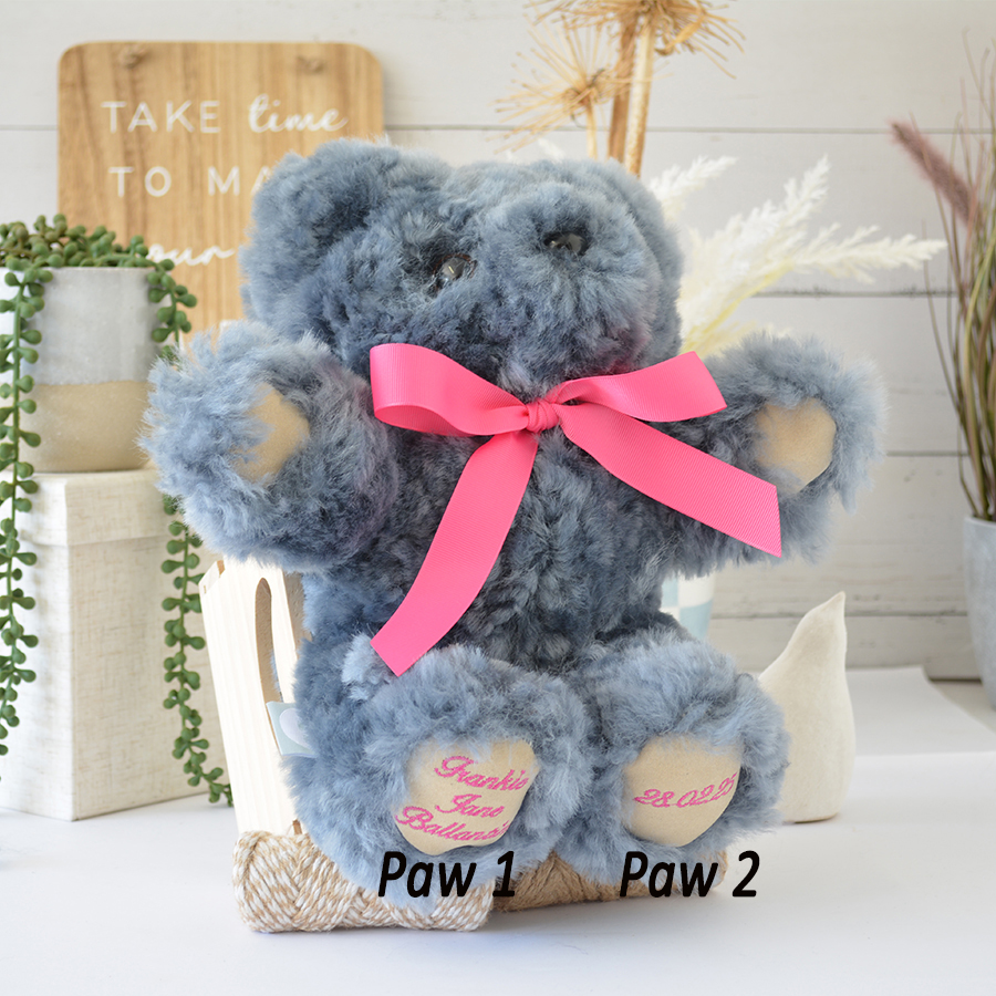 Make your Tambo Teddy truly one-of-a-kind with our Personalised Basil Tambo Teddy option! Perfect for special occasions, treasured gifts, or simply to create a lifelong keepsake, we offer custom embroidery of names or meaningful words on our suede paw Basil teddy’s feet. Add a personal touch by choosing a name or date to be expertly stitched onto your bear’s paws.